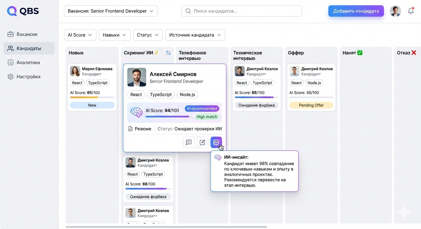 QBS — современная платформа автоматизации найма, которая объединяет AI-скрининг, умные интервью и аналитику в одном месте.